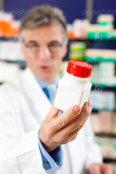 Фармацевт в аптеке с лекарством