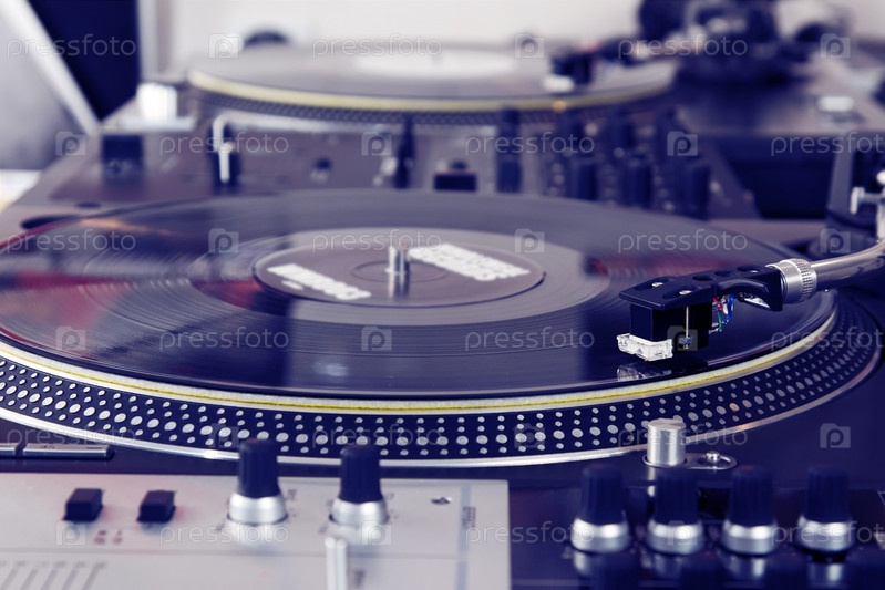Виниловые проигрыватели на диджейском пульте