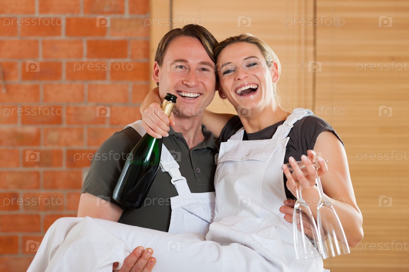 Молодая пара отмечает переезд