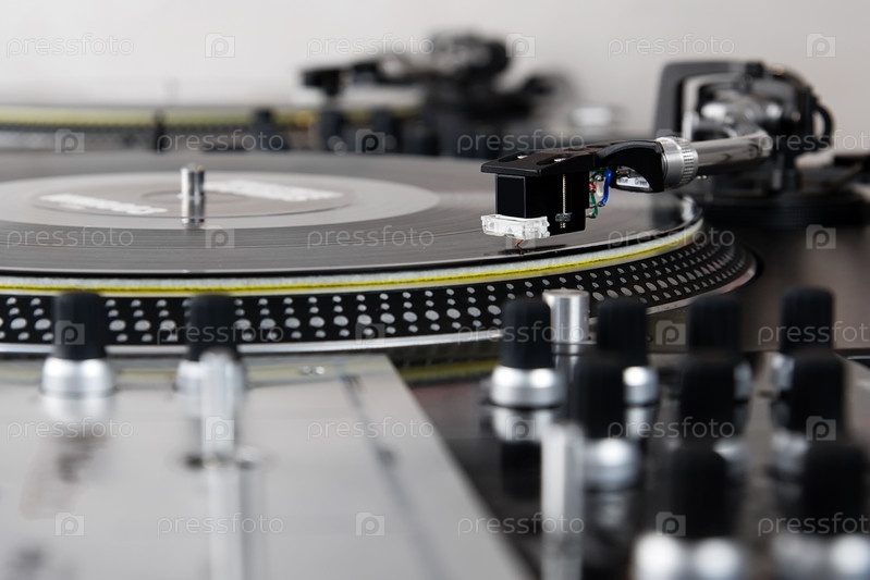 Виниловый проигрыватель на диджейском пульте
