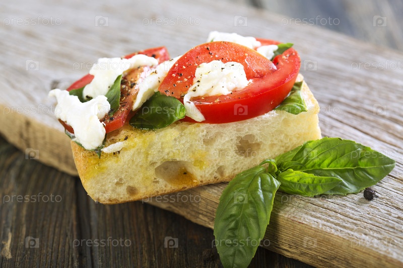 Помидоры, моцарелла и базилик на чиабатте