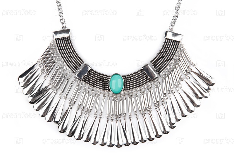 Серебряное ожерелье на белом