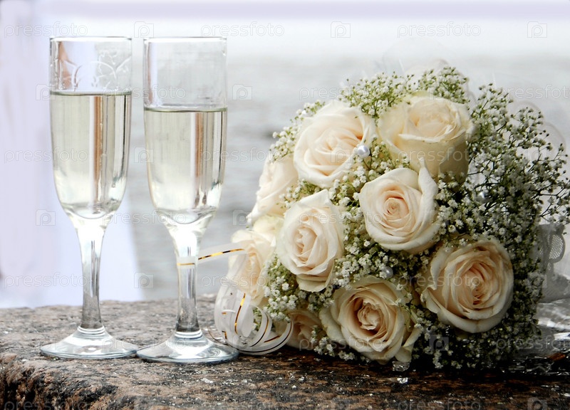 Букет и бокалы с шампанским