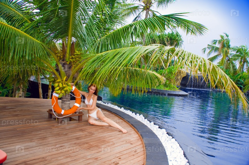 Молодая красивая женщина возле пальмы