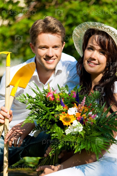 Счастливая пара в саду
