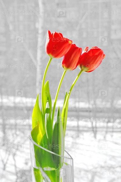 Красные тюльпаны в вазе