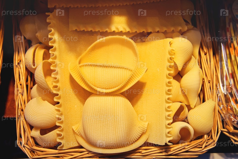 Итальянская паста на полке магазина