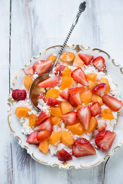 Тарелка с творогом и свежими фруктами