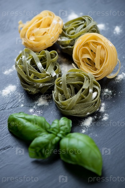 Цветные итальянские тальятелле с зеленым базиликом