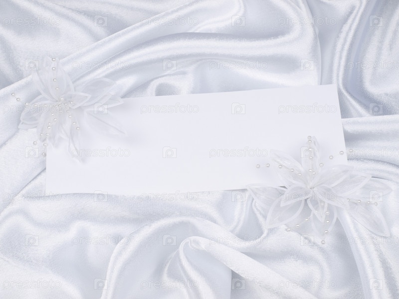 Чистый лист и свадебные аксессуары на белом шелке