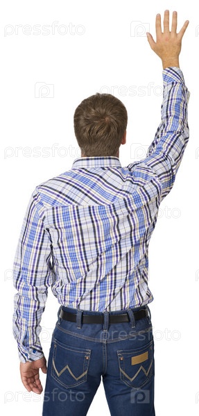 Молодой мужчина поднял руку вверх