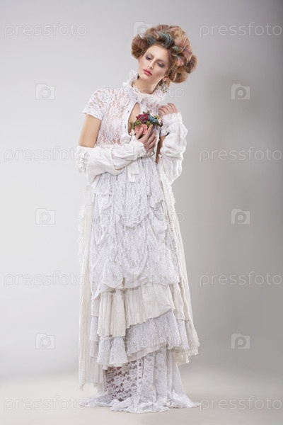 Гламурная дама в элегантном кружевном платье