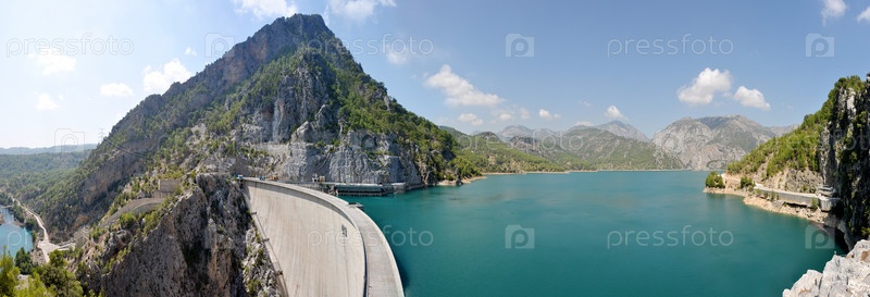 Горный каньон и гидроэлектрическая плотина Панорама под небом