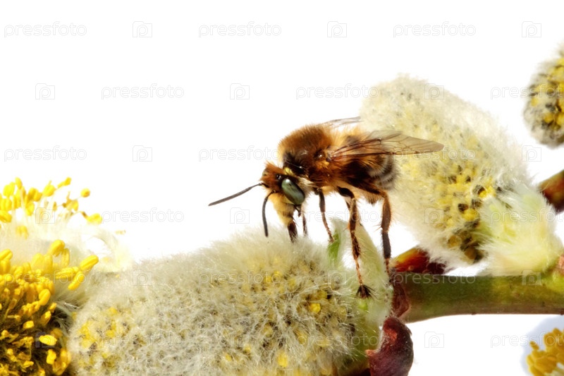 Пчела на ветке вербы