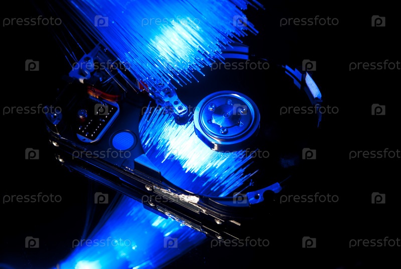 Жесткий диск, освещенный пучком волоконной оптики