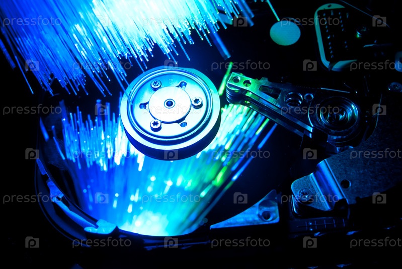 Жесткий диск, освещенный пучком волоконной оптики