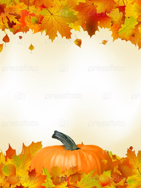 Осенние листья с тыквой. EPS 8