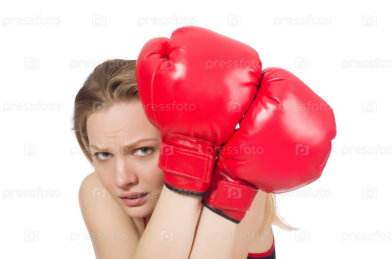 Женщина боксер на белом фоне