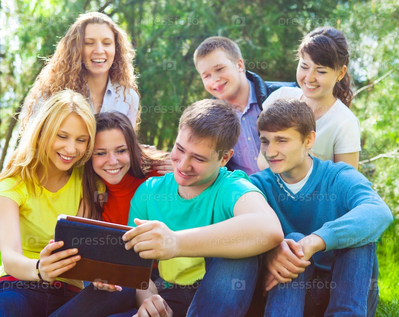 Студенты с планшетным компьютером