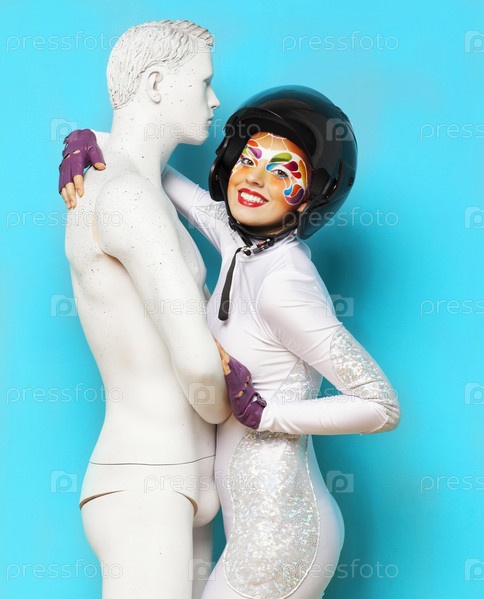 Модель с яркими творческим макияжем