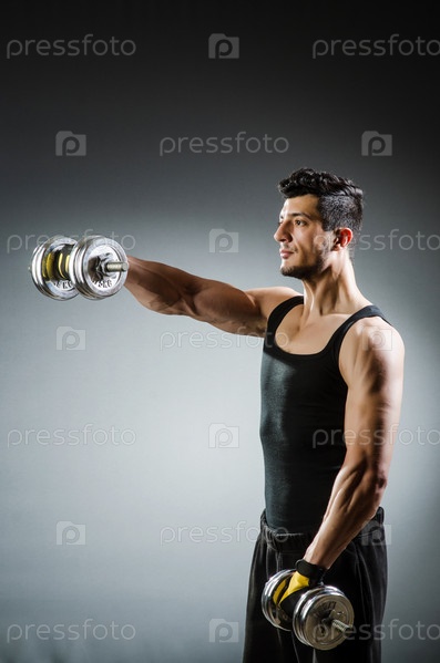 Культурист с гантелями