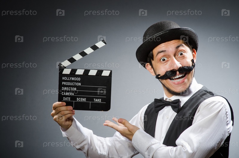Забавный человек с хлопушкой