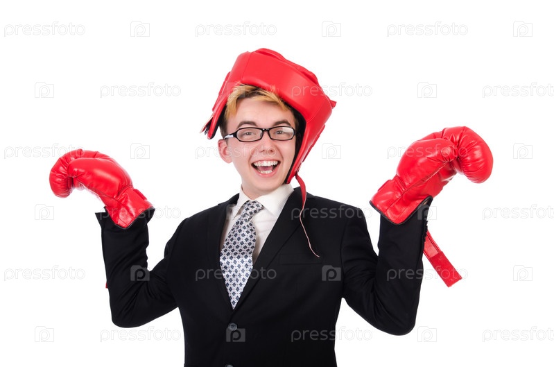 Молодой бизнесмен в боксерских перчатках
