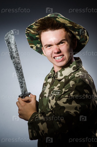 Смешной солдат на темном фоне
