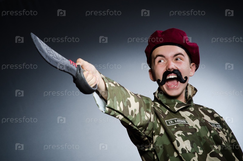 Смешной солдат на темном фоне