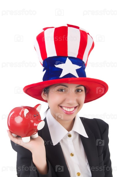 Деловая женщина с копилкой