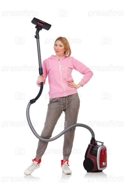 Молодая женщина с пылесосом