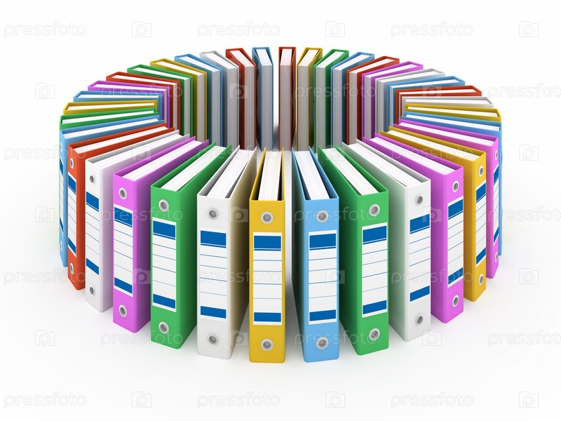 Офисные папки, стоящие по кругу, изолированы на белом
