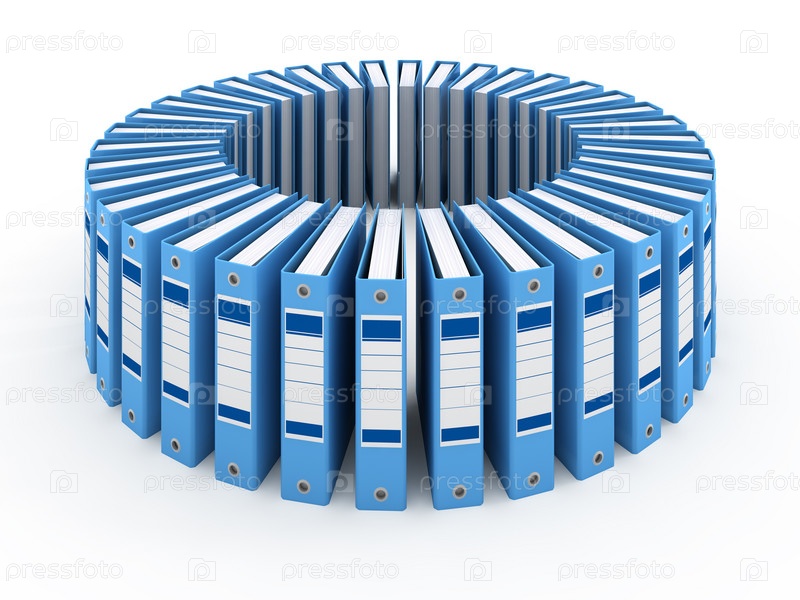 Офисные папки, стоящие по кругу, изолированы на белом