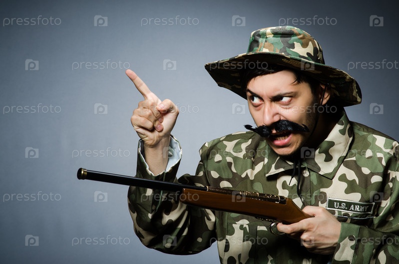 Смешной солдат на темном фоне