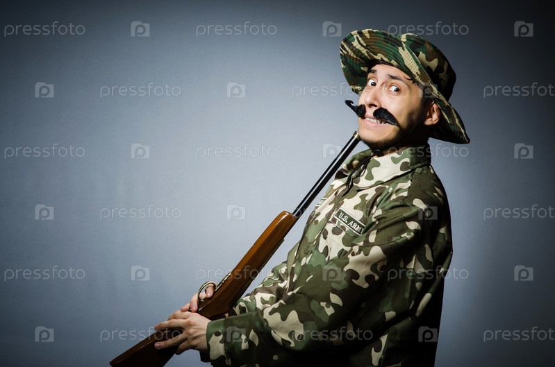 Смешной солдат на темном фоне
