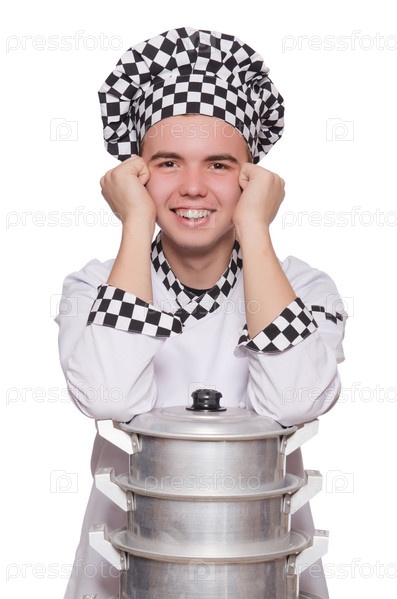 Повар с кастрюлями