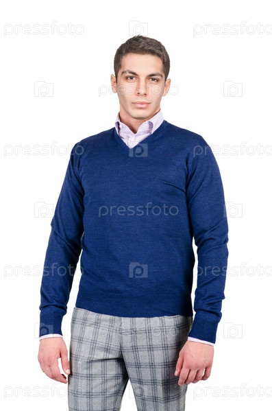 Мужчина позирует на белом фоне
