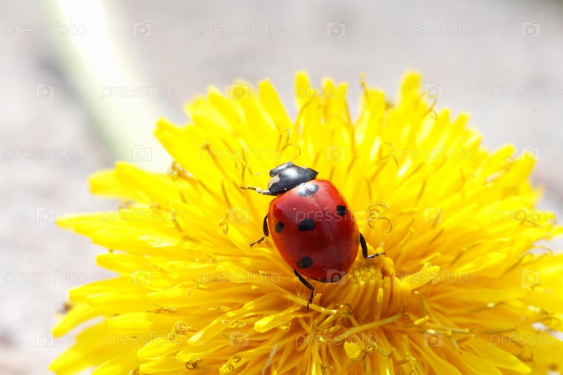 Божья коровка на одуванчике