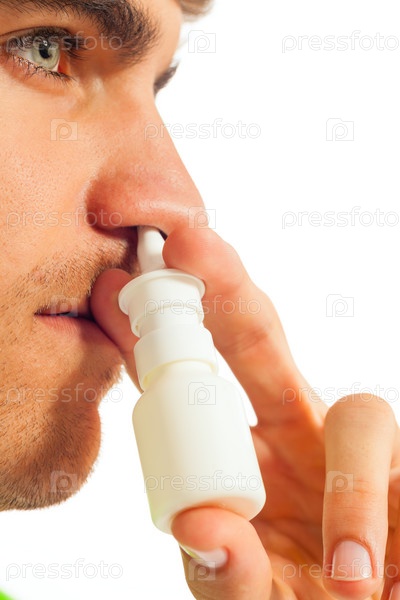 Молодой человек с назальным спреем