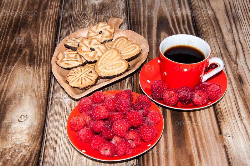 Кофе, малина и печенье