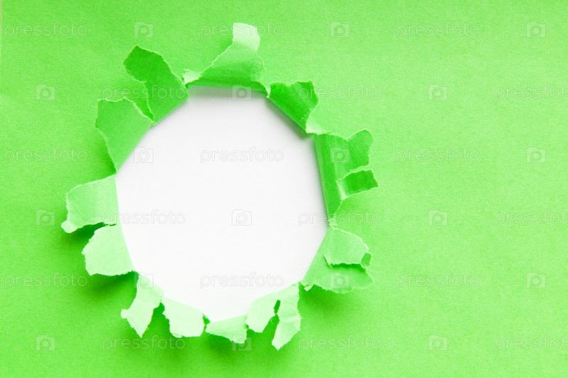 Отверстие в зеленом листе бумаги