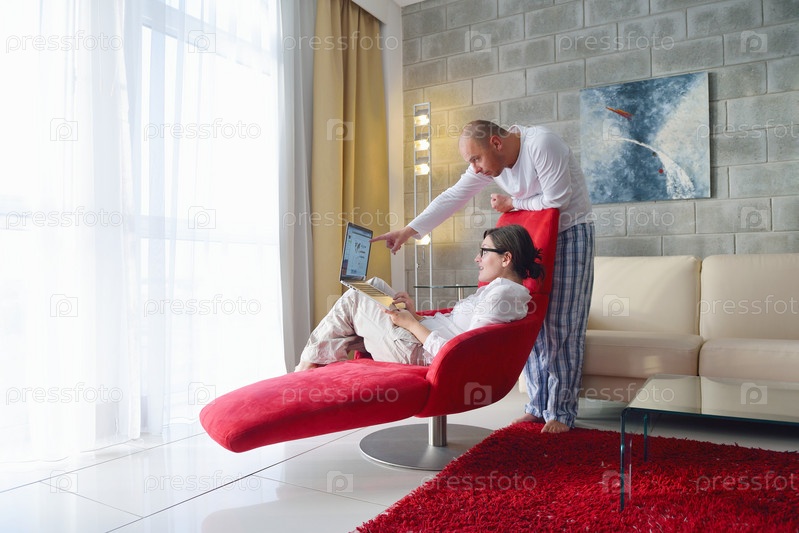 Счастливая молодая пара отдыхает дома