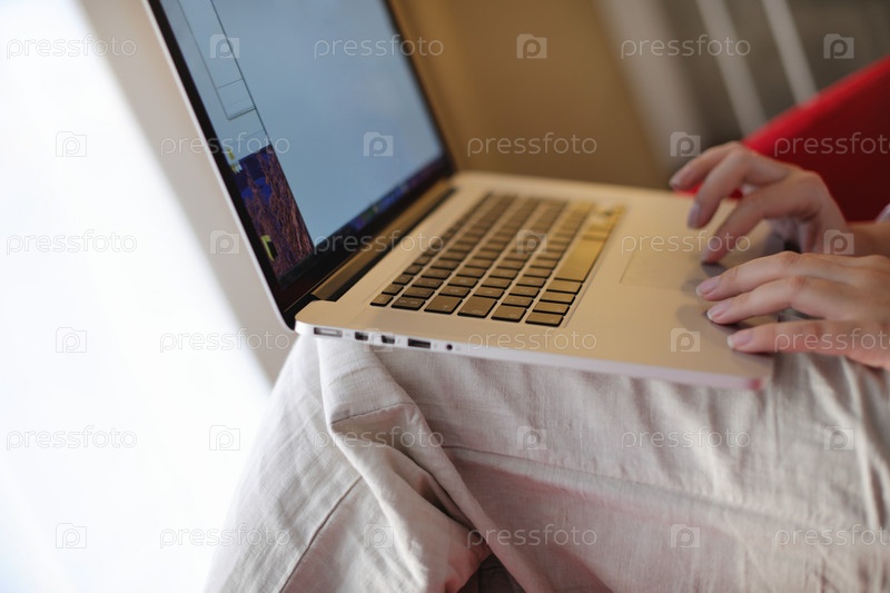 Женщина с ноутбуком в кресле