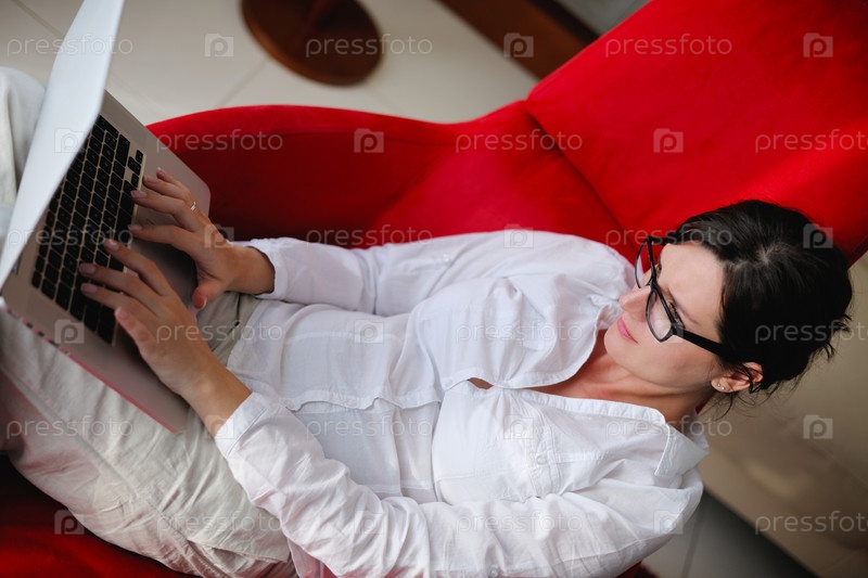Женщина с ноутбуком в кресле
