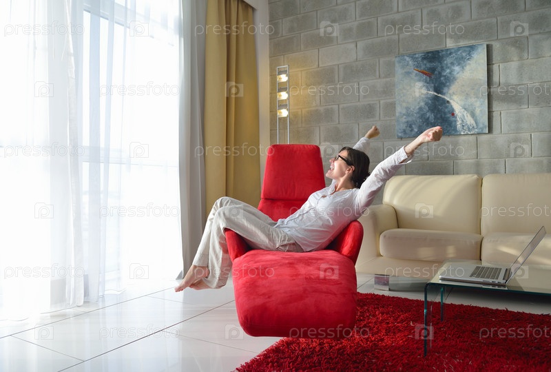 Счастливая молодая женщина отдыхает дома