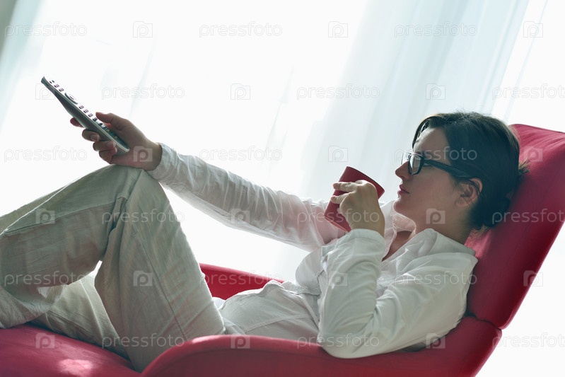 Молодая женщина смотрит телевизор