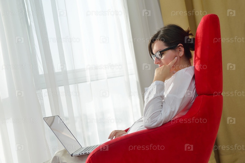 Женщина с ноутбуком в кресле