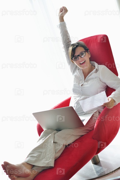 Женщина с ноутбуком в кресле