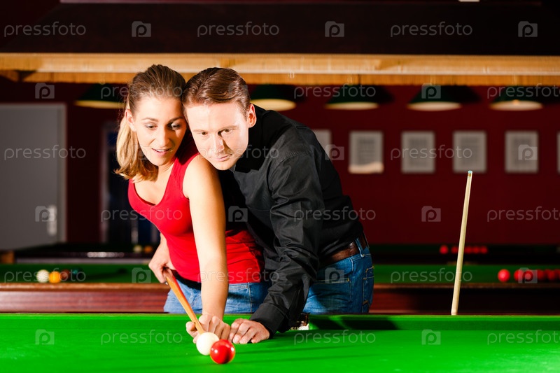 Пара играет в бильяр