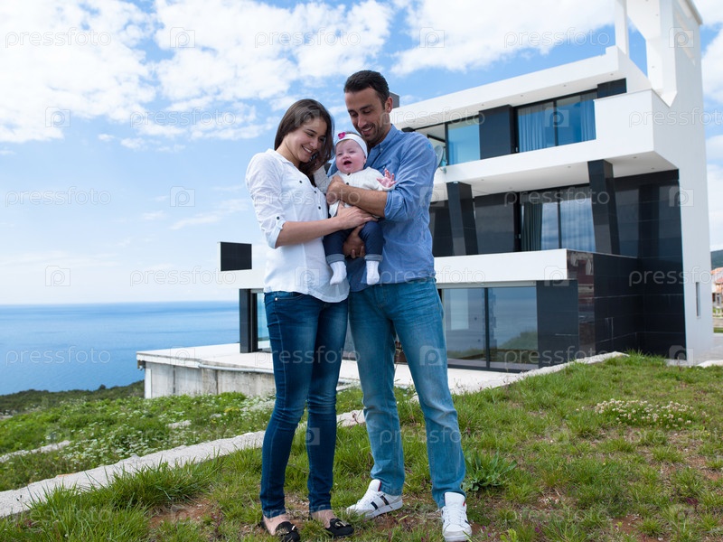 Молодая семья возле дома